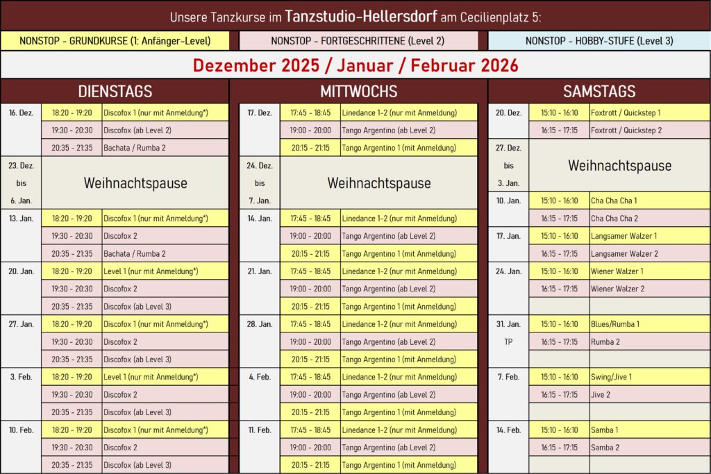 Anfänger „Mini-Kurs“ (max. 3 Paare) nur Dienstags, 18:20 – 19:20 Uhr